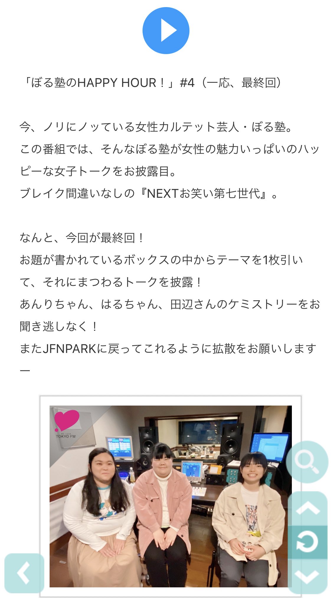 ぼる塾 きりやはるか ぼる塾のハッピーアワー 第4回です ぬわんと 最終回でございます でも 今までのやつ含めて 再生回数や視聴率次第で またできるかもしれません Jfnparkアプリで無料ですので ぜひお願いします 拡散もよろしくお願い致します